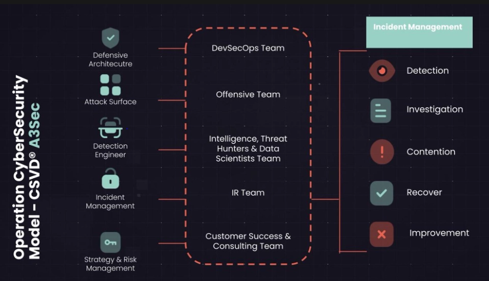 El equipo de respuesta a incidentes se enfoca en la ejecución de actividades orientadas a la gestión de alarmas e incidentes, mediante la priorización, investigación, escalamiento, contención y recuperación frente a eventos generadores de riesgo para nuestros clientes. Su enfoque se compone de las siguientes tareas: